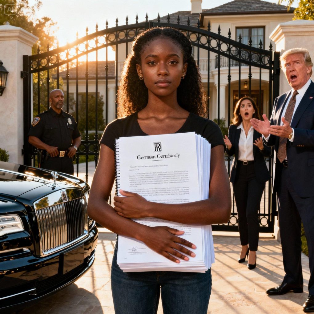 The afternoon sun scorched the long driveway of the Valmont Estate, its golden rays bouncing off the billionaire’s silver Maserati. Dressed in his signature navy suit, Charles Valmont, one of New York’s most influential financiers, arrived earlier than expected. At the gate stood Marcus Greene, the longtime gatekeeper — a tall, quiet man whose dark skin glistened with sweat as he fumbled to open the iron gates. Beside him stood a young girl holding a worn backpack — his daughter, Naomi, barely sixteen.