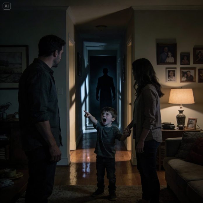 My husband and I were in the middle of an argument when our five-year-old suddenly shouted, “Stop fighting! He’s coming!” We both froze. “Who?” I asked. My son pointed toward the hallway. “No one believes me,” he whispered. “But the tall man always stands there at night.”