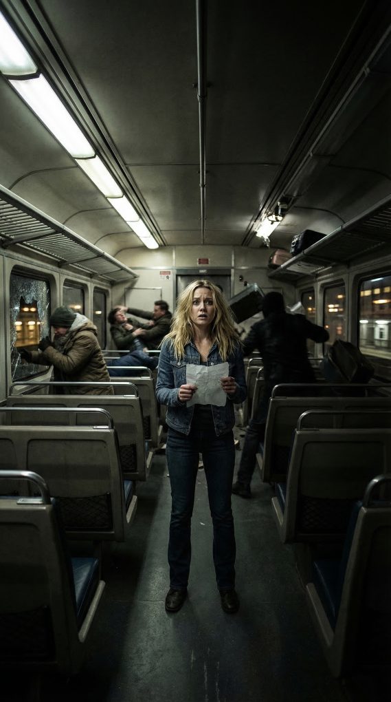 Part 1: The Note on the Train The train was already moving when the conductor reached my seat. It was late, somewhere between states, the kind of quiet overnight ride where everyone kept to themselves. I handed him my ticket, barely looking up. He punched it quickly, but instead of giving it back right away, he paused. Then he slipped something small into my hand. “Change carriages. Now.” I frowned, glancing down at the note. “What?” I looked up, confused. “Why?” He didn’t meet my eyes. His jaw tightened slightly, and he leaned closer, just enough for me to hear. “Do it,” he muttered. Something about his tone made my chest tighten. It wasn’t a suggestion. It was fear. Real fear. I turned to look around my carriage. Everything seemed normal. A couple arguing quietly across the aisle. A man asleep with his head against the window. A blonde woman scrolling on her phone a few rows ahead. Nothing out of place. “Is this some kind of joke?” I asked, but the conductor had already moved on. He didn’t look back. I stared at the note again, my fingers tightening around it. “Change carriages. Now.” My pulse began to rise for no reason I could explain. I stood up slowly, grabbing my bag. As I stepped into the aisle, the train lurched slightly, the lights flickering once overhead. I hesitated. Maybe I was overreacting. But then I noticed something. The man by the window… he wasn’t sleeping. His eyes were open. Wide. Staring straight ahead, completely still. The couple across the aisle had stopped arguing. They were just sitting there now, silent, their faces pale. The blonde woman slowly lowered her phone, her expression changing into something tense… something wrong. A chill ran down my spine. I didn’t wait anymore. I moved quickly toward the next carriage door and pushed through. The moment I stepped inside, the door slammed shut behind me with a heavy metallic bang. I turned back just in time to see the lights in the carriage I left flicker violently… then go out completely. For a split second, through the small window in the door, I saw movement. Fast. Violent. Then the screaming started.