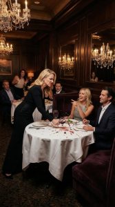 The sound of shattering glass echoed louder than I expected, like something irreversible had just snapped—not just the glass, but whatever illusion I had been clinging to. Red wine spilled across the white tablecloth, dripping off the edges like something symbolic, something final. Every head in the restaurant turned toward us. For a moment, no one spoke. Then Madison stood up abruptly, her chair screeching against the floor. “Are you insane?” she snapped, her voice sharp and cutting. I laughed—but it didn’t sound like me. It was hollow, almost foreign. “Insane? No, Madison. I think I’ve just been blind.” Ethan finally stood, his expression shifting from amusement to irritation. “Claire, sit down. You’re embarrassing yourself.” That word—embarrassing—hit harder than anything Madison had said. “Embarrassing?” I repeated, my voice rising. “You invite your ex to dinner, sit her next to you like she belongs there, and I’m the embarrassment?” People nearby whispered, phones subtly lifting, capturing everything. Madison crossed her arms, smirking again. “You’re making a scene, sweetheart. This is why Ethan always said you were… too much.” I stepped closer to her, my heels clicking against the marble floor, my hands shaking with adrenaline. “Say that again.” She leaned in, her voice dripping with mockery. “You. Don’t. Belong. Here.” Before I could think, I shoved her shoulder. Not hard enough to knock her down, but enough to wipe that smile off her face. Gasps erupted around us. Madison stumbled back, eyes wide with shock, then fury. “You just made a big mistake,” she hissed, lunging forward and grabbing my arm. We struggled for a second—hands gripping, pulling—until Ethan stepped between us. “Stop it! Both of you!” he barked, but his grip on me was tighter, more controlling. “Claire, what is wrong with you?” I yanked my arm free. “What’s wrong with me? I should be asking what’s wrong with YOU!” My voice cracked, but I didn’t care anymore. “You let her humiliate me. You laughed.” Silence fell again, heavier this time. Even Madison looked slightly thrown off. I turned toward the room, my chest rising and falling rapidly, then shouted, “Manager!” A man in a suit rushed over, clearly alarmed. I pointed directly at Ethan and Madison. “Kick them both out. Right now.” The words hung in the air, bold and undeniable. Ethan stared at me like he didn’t recognize me anymore. “You can’t be serious,” he said quietly. I met his gaze, steady for the first time that night. “No, Ethan. I’ve never been more serious.” But what happened next… no one in that room was ready for.