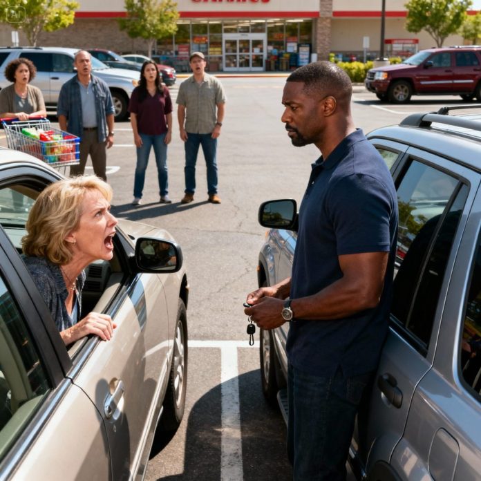 “Move your car, now!” Karen’s shrill voice pierced through the quiet morning air of Maplewood Residence. The woman in her mid-50s, arms crossed tightly over her chest, stood glaring at the young Black man who had just parked his silver Honda Accord. The man, Marcus Greene, a 32-year-old high school teacher, had just returned home from his early gym session. His assigned parking spot, marked “B-12,” had been taken by a visitor’s truck earlier that morning. So, he parked in the only available space left — one that happened to be in front of Karen’s townhouse.