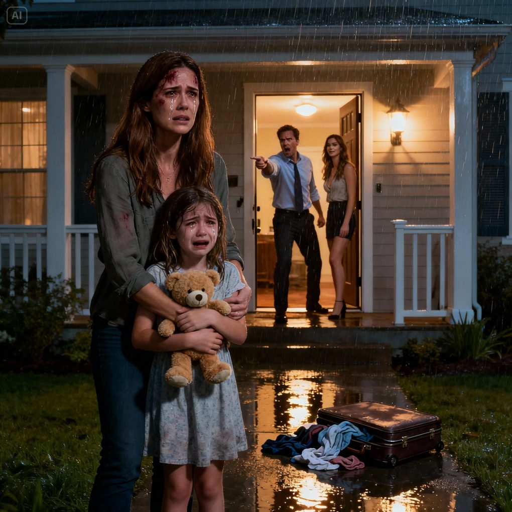 My name is Emily Carter, and that night was the lowest point of my life. I had no job, no savings, and no place to go. For years, I had sacrificed my career to raise our daughter, Lily, while Mark climbed the corporate ladder. He told me I didn’t need to work — that he’d take care of us. But when I discovered his affair, everything changed. Instead of remorse, he turned cruel. Within hours, he threw us out, leaving me standing in the rain, holding a crying child and a suitcase.