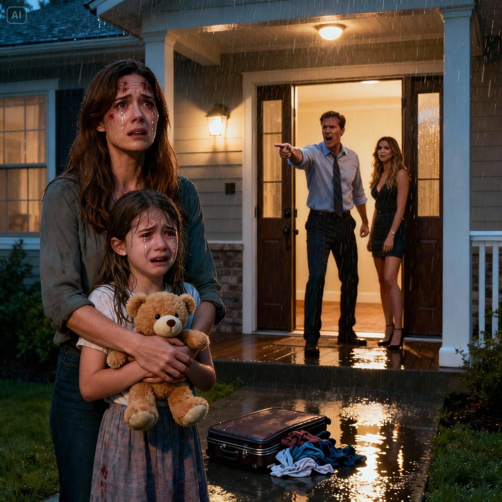 Those words hit harder than the shove that came right after. He hurled my suitcase into the yard, tossed Ava’s small backpack after it, and slammed the door in our faces. Just like that—ten years of marriage erased. I stood barefoot on the cold porch, my daughter crying into my shirt, while Sierra smirked at us from the window as if we were stray animals he had finally gotten rid of.
