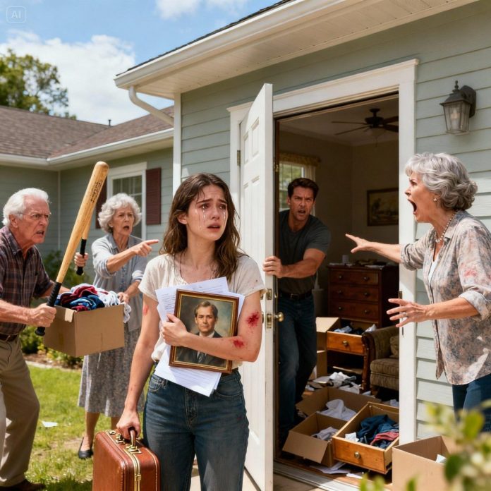 The door cracked open, revealing Gloria’s tear-stained face. She stepped aside without a word. My living room was a disaster—drawers open, pictures gone, furniture moved. But everything they’d tried to take was still on the property, which worked in my favor.