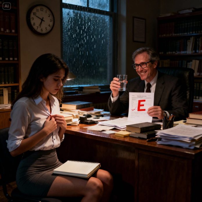 That night, I stood outside the psychology building, the autumn air sharp against my face. The hallway lights flickered through the window, casting long shadows over the empty corridor. My hand hovered over the door handle. I took a deep breath, uncertain if I was about to fix my grade—or walk into something far darker than I could imagine.
