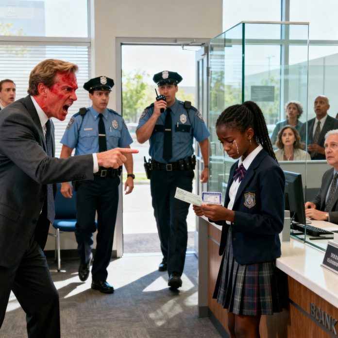 The marble floors of the downtown San Francisco bank gleamed beneath the bright noon light, reflecting the pristine, ordered world that Richard Coleman, the bank’s CEO, liked to believe he controlled. That illusion shattered the moment Amara Johnson, a 16-year-old Black girl in a simple denim jacket, walked through the doors. She was there to cash a check her mother had written — something she’d done many times before. But this time, before she could even reach the counter, Coleman’s sharp voice cut through the quiet hum of the lobby.