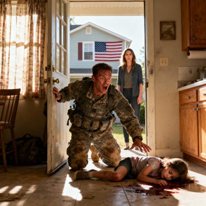 Fate intervened at that very moment. Nathan had returned home unexpectedly after months of deployment. He walked through the front door, expecting to see his little girl run to him like she always did. Instead, what he saw froze him to the core — Lila, motionless on the floor, pale, and bleeding.