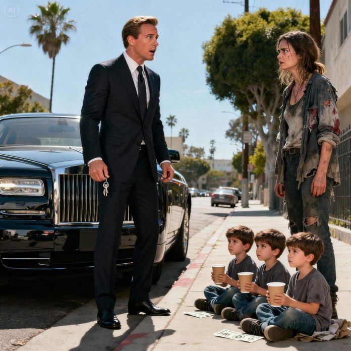 A millionaire discovered that his ex-girlfriend — the one he abandoned five years ago — was begging on the streets with triplets who looked exactly like him. “Are they my children?” he asked, but she said nothing, only gave him a look of contempt. The next day, he searched for her and the three kids in desperation…