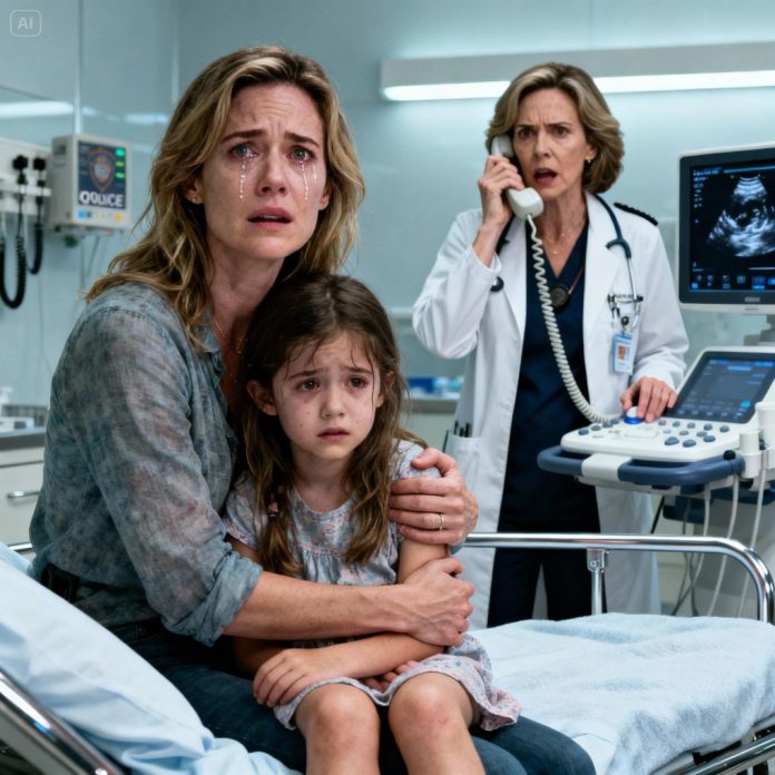 Dr. Ramirez’s calm expression began to shift as he examined her abdomen, noticing bruising patterns that did not match a simple fall. He ordered an abdominal ultrasound immediately.