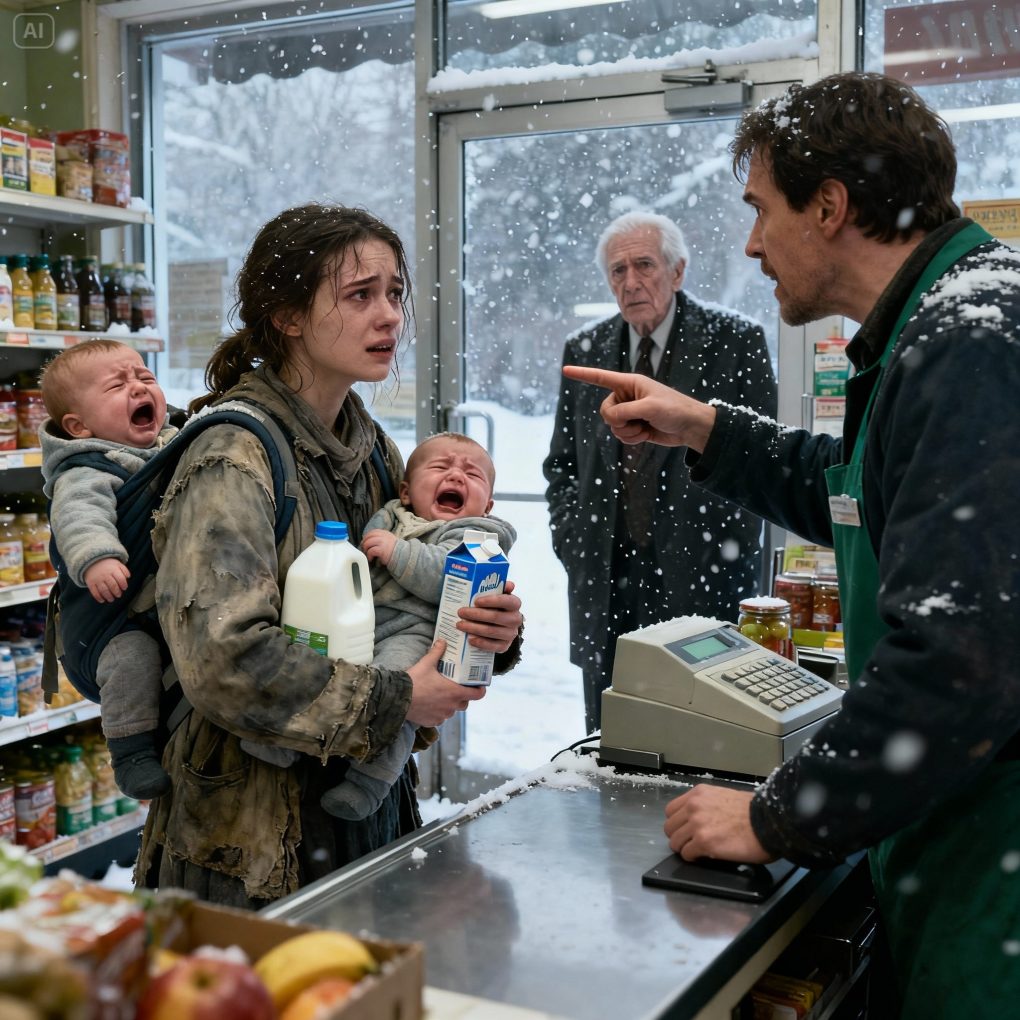 Inside the store, a little girl no older than eight stood nervously near the dairy section. Her coat was too thin, her shoes worn out. She kept glancing toward the cashier, then back at the carton of milk in her tiny hands.