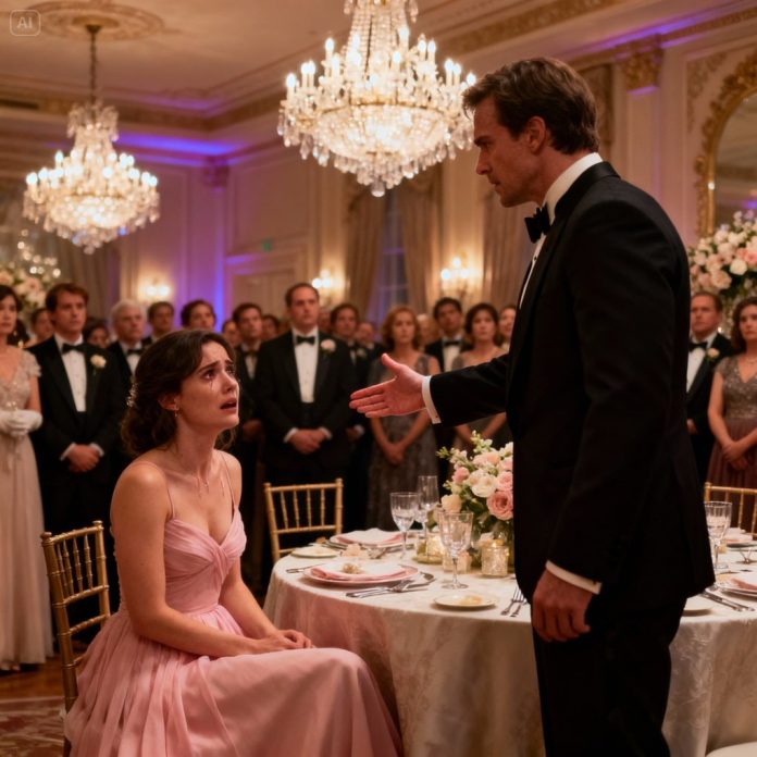 The grand hall sparkled with chandeliers, soft music drifting through the air. Guests in expensive gowns and tuxedos laughed, clinking glasses. But in the corner, Clara Evans sat alone, clutching her glass of sparkling water like a lifeline.