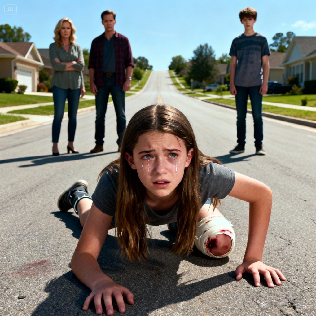 So instead of getting her medical help, they forced her to walk. Three agonizing hours — down the path, through the backyard, up the driveway, into the house — all while she sobbed, begged, and collapsed repeatedly. Each time she fell, my father told her to “stand up and stop being dramatic.” She did what they asked because she was scared, alone, and convinced she would get in trouble if she pushed back.
