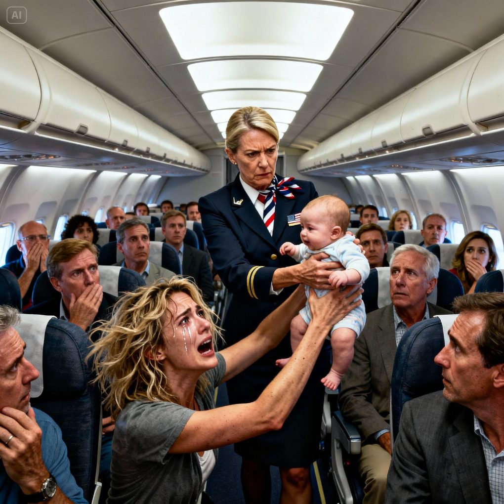 I froze. “I—what? He’s just a baby. And this flight is confirmed under my name. I checked in hours ago.”