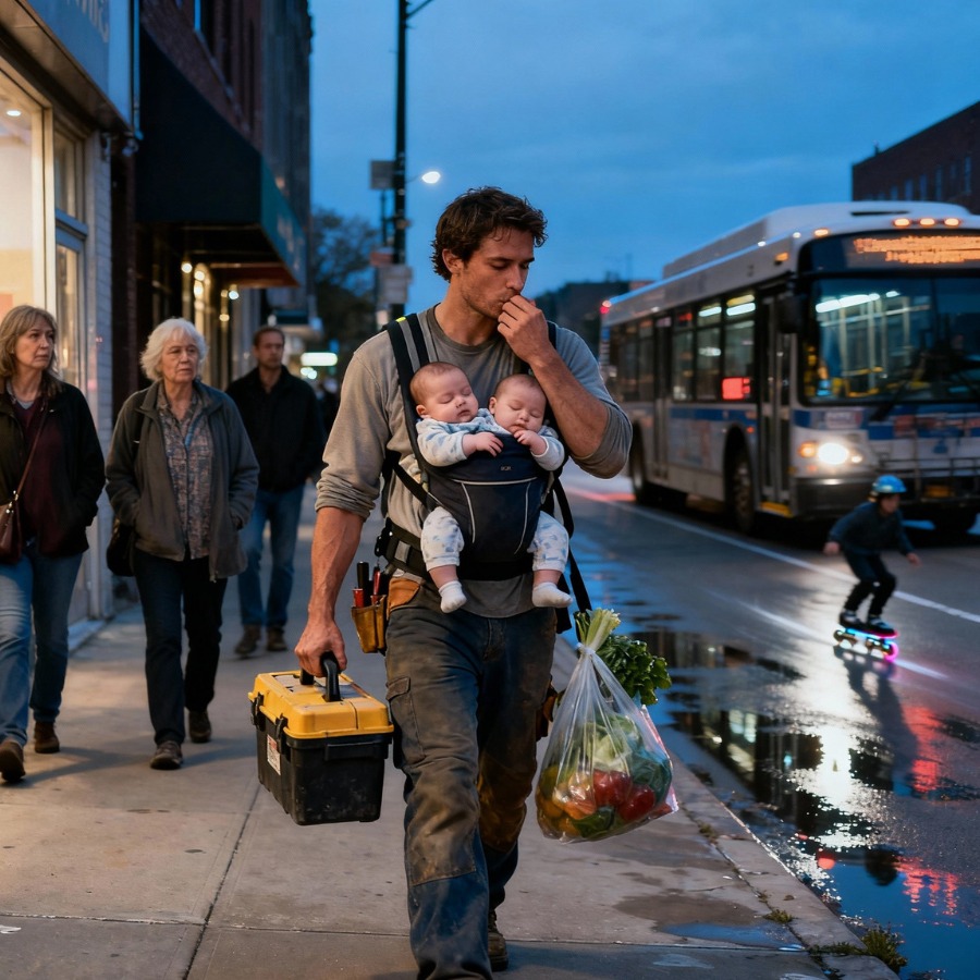 Every day since then felt like a marathon. He worked ten-hour shifts, came home, bathed the twins, prepped bottles, fixed things around the house, and collapsed into bed — only to start again before dawn. He never complained. Not once. But exhaustion clung to him like a second skin.