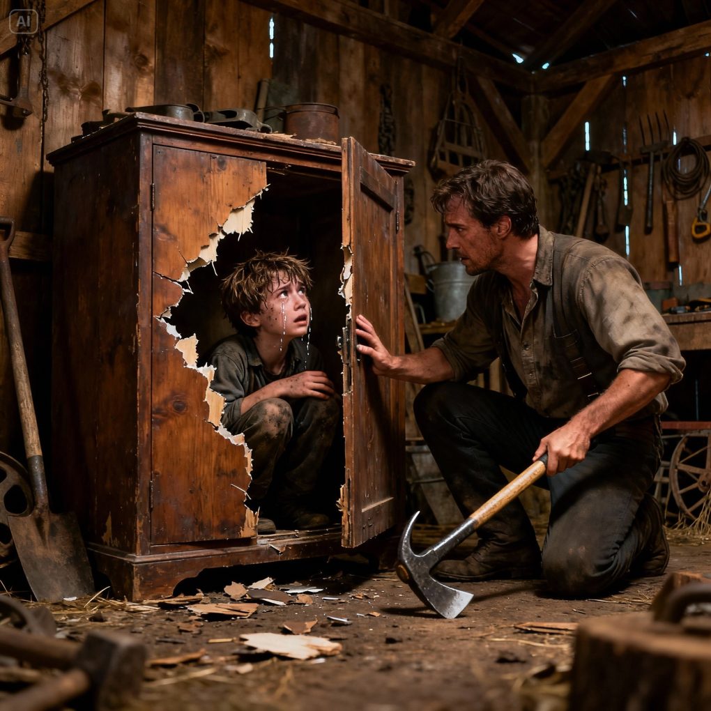 The first strike splintered the frame. The second cracked the lock. By the third, the entire panel gave way, bursting inward as Ethan stumbled into my arms. He was trembling, his cheeks wet with tears and dirt. I held him tight against my chest, whispering that he was safe, that I was here. And for a moment, all the rage boiling inside me was drowned out by the overwhelming relief of feeling his small body cling to mine.