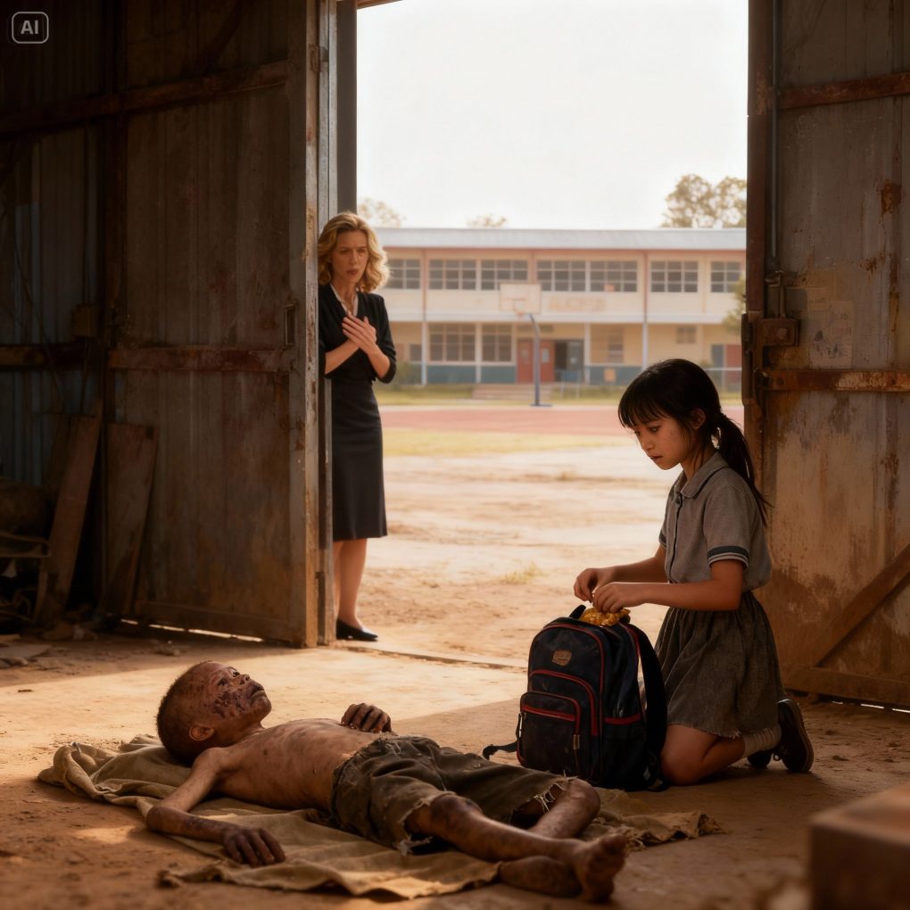 Every afternoon, Ms. Harper Lane, a second-grade teacher at Brookwood Elementary, watched her students run outside for recess with the same burst of energy. Except for one child — Emily Carter, a quiet 7-year-old with brown curls and shy eyes. Emily never ate her lunch. Not once. While the other children munched on sandwiches or traded snacks, she carefully wrapped hers back up and tucked it into her backpack as if protecting something fragile. At first, Harper assumed Emily simply wasn’t hungry. But it became a pattern — every day for two weeks. The untouched apple. The sealed yogurt. The sandwich still perfect in its plastic wrap. And every time someone offered to share food with her, Emily would pipe up with a tiny, nervous “I’m okay, thank you.” Something wasn’t right. One chilly Thursday, Harper decided to quietly observe Emily during recess. The moment the bell rang, Emily slipped away from the playground instead of running toward the swings. She moved quickly, glancing behind her as though making sure no one followed. But Harper did — slowly, carefully, keeping just enough distance to avoid alarming her. Emily walked around the back of the school building, down a narrow path that led toward the old maintenance shed. The area was off-limits to students — deserted, shadowed, and rarely checked by staff. Harper quickened her step. When she reached the corner of the shed, she stopped dead in her tracks. Emily was kneeling on the ground, pulling items from her backpack: her sandwich, her apple, her juice box. She set them gently on the ground. Then Harper saw why. A small boy — no older than four — stepped out from behind the dumpster. His cheeks were hollow. His clothes oversized and filthy. His little hands shook as he reached for the sandwich. “Eat slowly,” Emily whispered, her voice trembling with worry. “You always get sick when you eat too fast.” Harper’s breath hitched. Who was this child? Why was he here? Why wasn’t anyone looking for him? And why was Emily feeding him in secret? Before Harper could speak, the little boy lifted his shirt — revealing bruises across his ribs. Harper felt her pulse spike. This wasn’t just secret charity. This was neglect. Abuse. A hidden emergency. Her hands shook as she dialed 911.