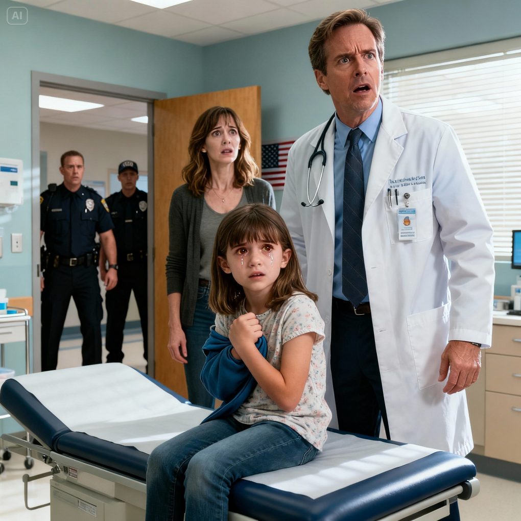 The examination began normally. Dr. Collins checked Emily’s vitals, gently palpated her stomach, and asked whether she had eaten anything unusual. Emily didn’t answer. She only stared at him, her lips pressed together as if weighed down by fear. Claire hovered nearby, repeatedly insisting, “She’s just shy with doctors.”
