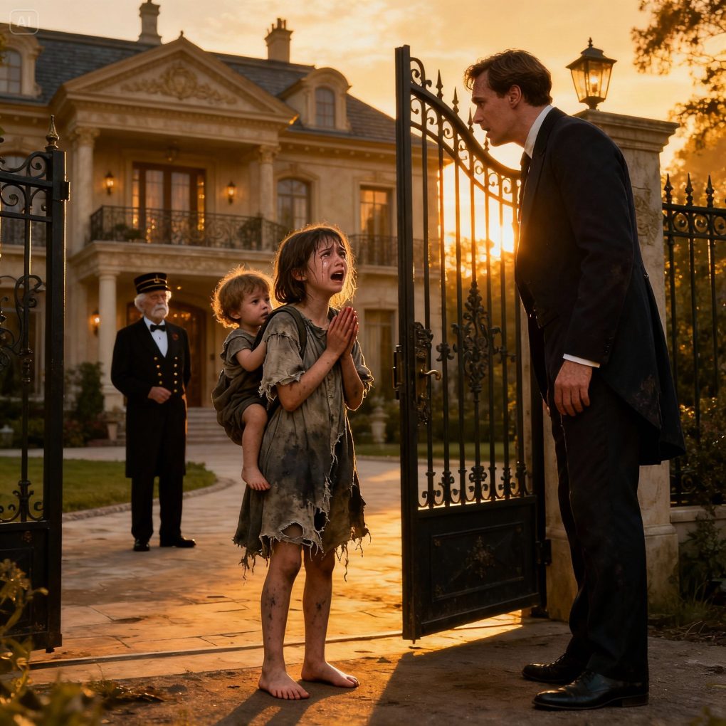 It was a warm, golden afternoon, the sun casting long shadows across the quiet streets of the city. Mia, a ten-year-old homeless girl, walked nervously toward the massive gates of the Whitmore estate. Her clothes were worn, and the small paper bag in her hands contained the last scraps of bread she had saved for her younger brothers, Alex and Sam. Her stomach growled, but her focus was on the two little faces she had promised to feed.