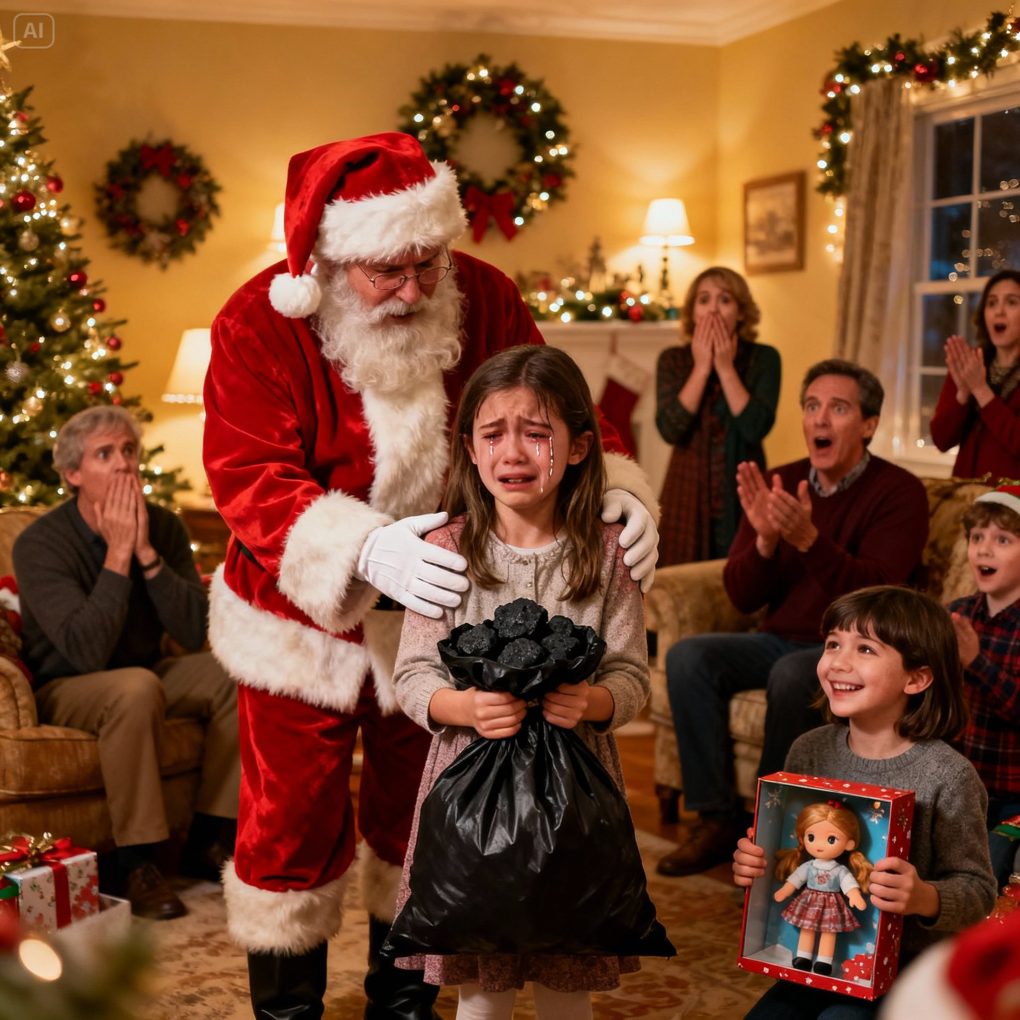 My father, dressed up as Santa, handed my 7-year-old daughter a trash bag and a piece of coal, telling her she was “too naughty” to deserve real presents, while my sister’s child received the doll she’d been wishing for. My mother and sister applauded like it was a show. I didn’t raise my voice. I made a plan. Two weeks later, they were the ones crying out in fear…