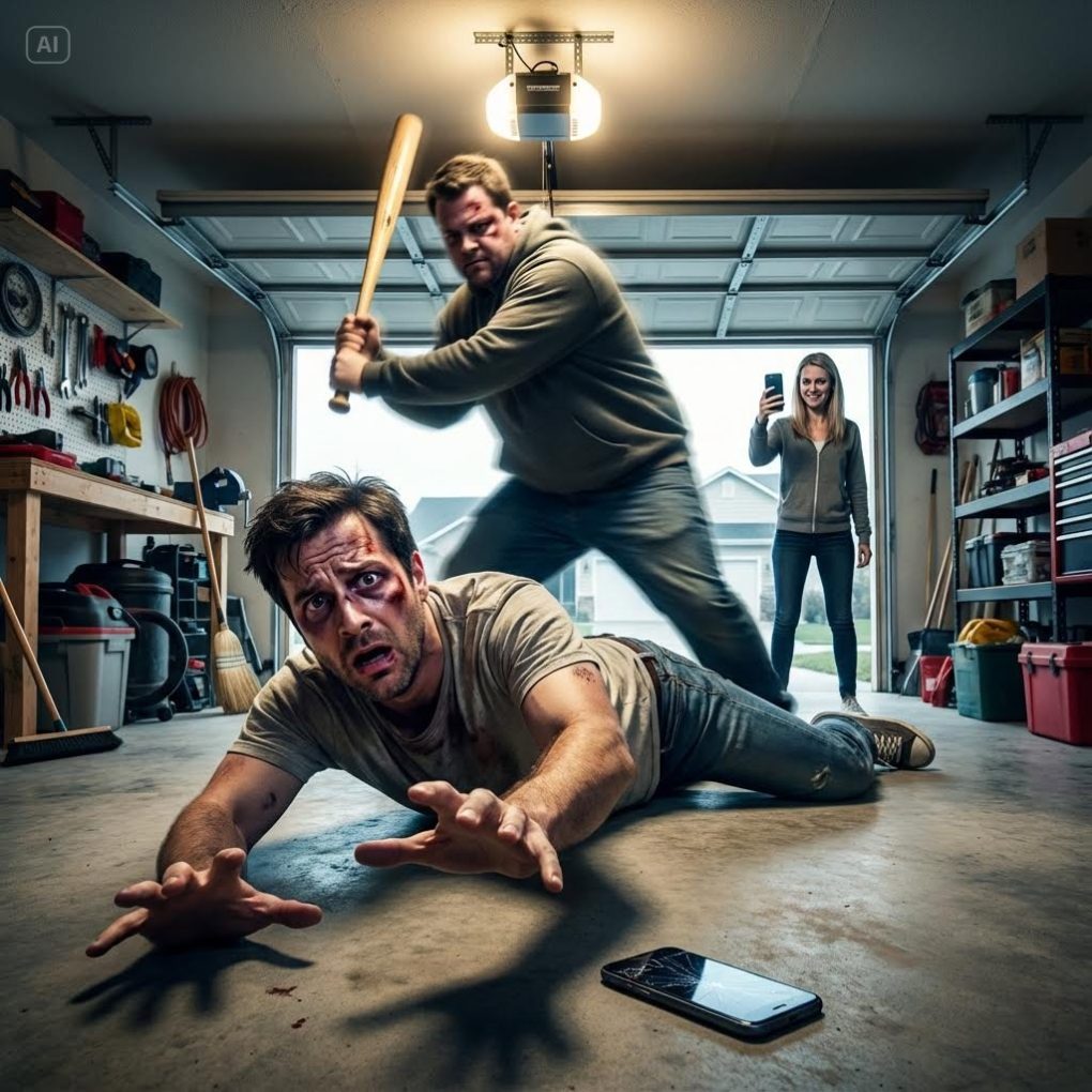 I got home early only to have my wife’s lover rush out of the dark — “Die!” he shouted, striking me repeatedly with a baseball bat. I lay on the garage floor, bleeding, as my wife stood there recording, laughing, “This will be hilarious online!” I crawled to my phone, barely breathing. “Cousin… make them disappear.” He replied calmly, “Okay. They’ll regret ever laying a hand on you.”