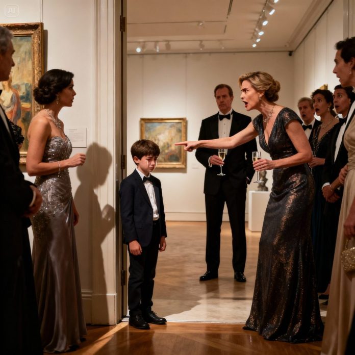 My Aunt Publicly Humiliated My Son at a Glamorous Gala, Making a Scene and Trying to Force Him to “Wait in the Lobby” Like He Didn’t Belong — But She Had No Idea That I Owned the Entire Gallery, Controlled Every Detail of the Event, and Was Watching Her Every Move. What Happened Next Left Every Guest Stunned and Made Her Regret Underestimating Me in the Most Public Way Possible.