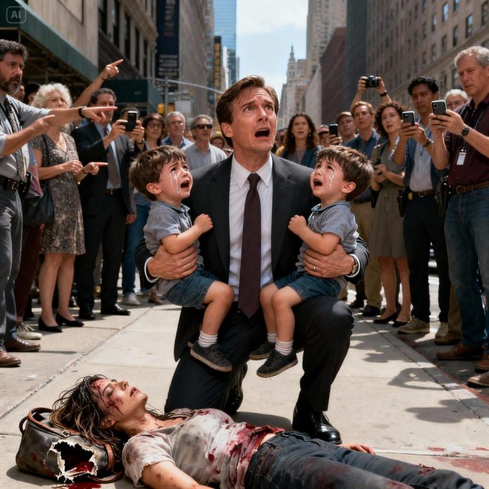 He halted when the homeless woman collapsed at the curb. But what shattered the billionaire wasn’t the fall— it was the two twins sobbing beside her. The eyes, the nose, the dimples— a mirror of his own face. He stepped forward, voice barely a breath. “Who… are you?” One little boy looked up, trembling. “Sir… are you our dad?” His heart twisted violently— and from that moment on, his life took a turn he could never have imagined.