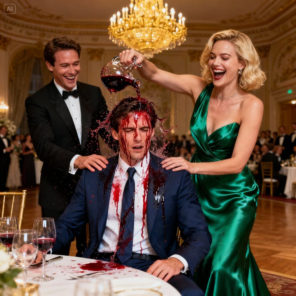 But the man didn’t flinch. He didn’t step back or wipe the stain. He simply looked at the wine dripping down his jacket, then raised his eyes to theirs with a calm, almost pitying expression. Without saying a word, he buttoned his coat and walked out of the ballroom. The crowd parted around him like he was invisible.
