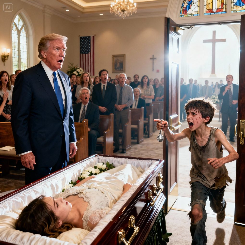 During the solemn funeral, as everyone bowed before the closed casket, a homeless Black boy burst in, panting, “Sir! Your daughter… she’s still alive!” The entire hall erupted in whispers. The billionaire froze, his hand trembling. “What… did you say?” The boy pulled a small object from his pocket and whispered, “She told me to give this to you. And not to trust anyone in your family.” The man’s face went pale—a devastating secret had just been unlocked…