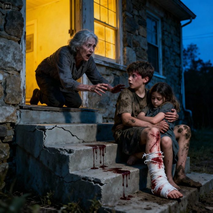 The pounding on her front door came just after 7 p.m., sharp enough to make eighty-year-old Eleanor Thompson flinch. She wasn’t expecting anyone. When she opened the door, she froze at the sight before her: a terrified six-year-old boy clutching the hand of a much smaller girl, both of them shaking violently, their clothes dirty, their faces streaked with tears.
