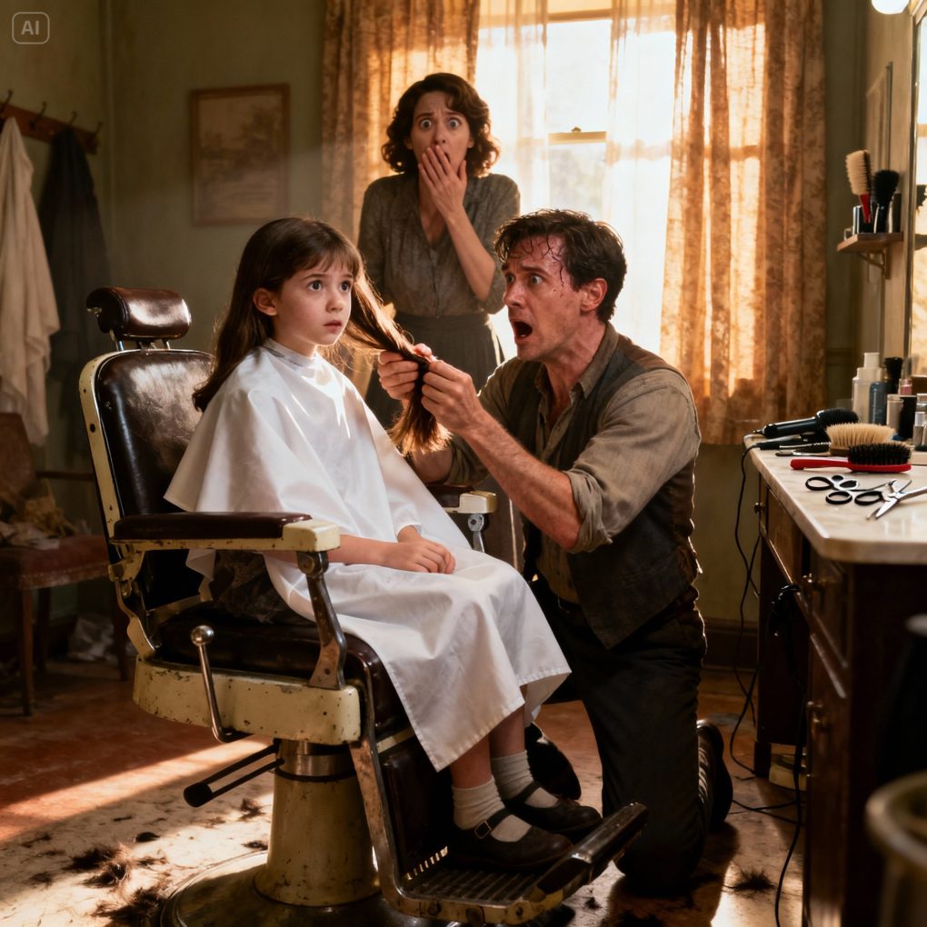 My husband, Daniel, had just gotten home from work when he did what he always did—sat our 8-year-old daughter, Lily, on the little wooden stool in the kitchen to trim her hair. It was their ritual, something that always made her giggle. But that night, the moment his scissors touched her hair, everything changed. His hands suddenly stopped mid-air. “Come here for a moment,” he whispered, his voice trembling in a way I had never heard in our ten years of marriage. I turned toward him, confused, but when he gently lifted the hair at the back of Lily’s head, his face drained of all color. My heartbeat quickened as he brushed aside more strands, revealing what looked like a raw, circular patch of missing hair surrounded by tiny red scratches—scratches that no child could have made on her own.