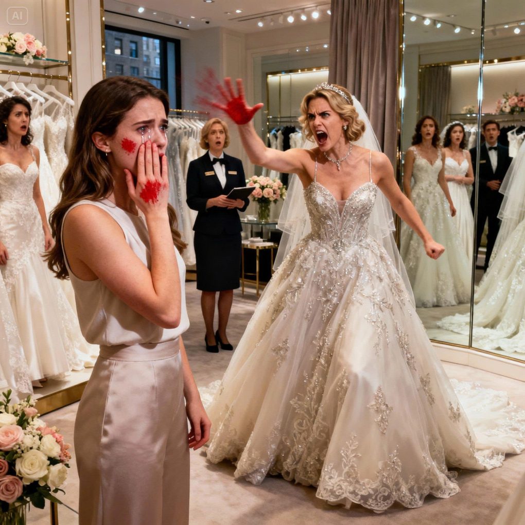 At the fitting for her $20,000 wedding gown—the one I paid for—my sister abruptly slapped me across the face in front of the entire store. “You’re ruining my special moment!” she shrieked, and the whole boutique fell silent. I touched my cheek and smiled faintly. No reply. No fight. I walked out, pulled out my phone, and canceled the credit card immediately. Her $500,000 wedding? It fell apart in a matter of minutes—just as quickly as she struck me.