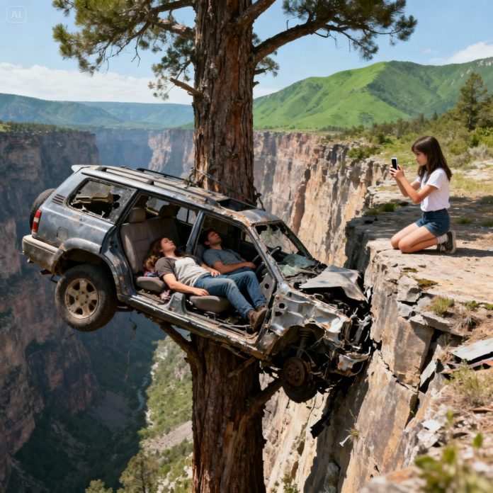 My daughter had cut the brake lines. When the car slipped off the cliff, we survived only because it got caught on a lone tree jutting out from the rock face. I panicked and was about to scream for help, but my husband whispered weakly, “Pretend to be dead. Don’t make a sound.” Outside, through the shattered glass, we heard our daughter calling emergency services, sobbing and begging them to come save us — as if she wasn’t the one who caused it all. My husband’s hand trembled as he gripped mine, his voice breaking. “I’m sorry… this is all my fault.”