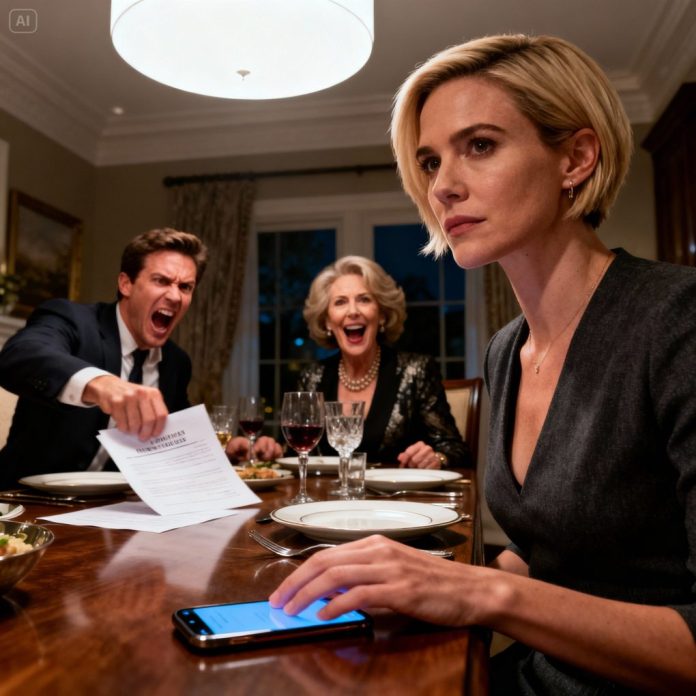 Emily Carter had known for months that her marriage to Daniel was crumbling, but she hadn’t expected it to collapse so dramatically. At their weekly family dinner in the Carson household, where his mother—Margaret—always sat like a self-appointed queen, Daniel suddenly slammed a stack of papers onto the dining table. The plates rattled, and everyone fell silent.
