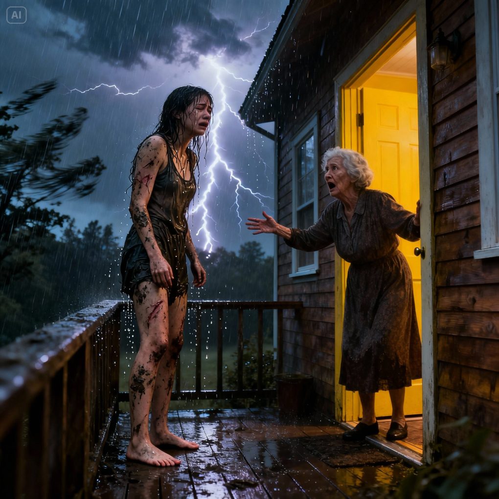 Rain hammered against the porch roof as I opened the door, thinking it was just the wind rattling it again. Instead, my daughter, Emily, stood there—soaked, trembling, mascara smeared down her cheeks. A bruise bloomed across her cheekbone like a dark, terrible flower.