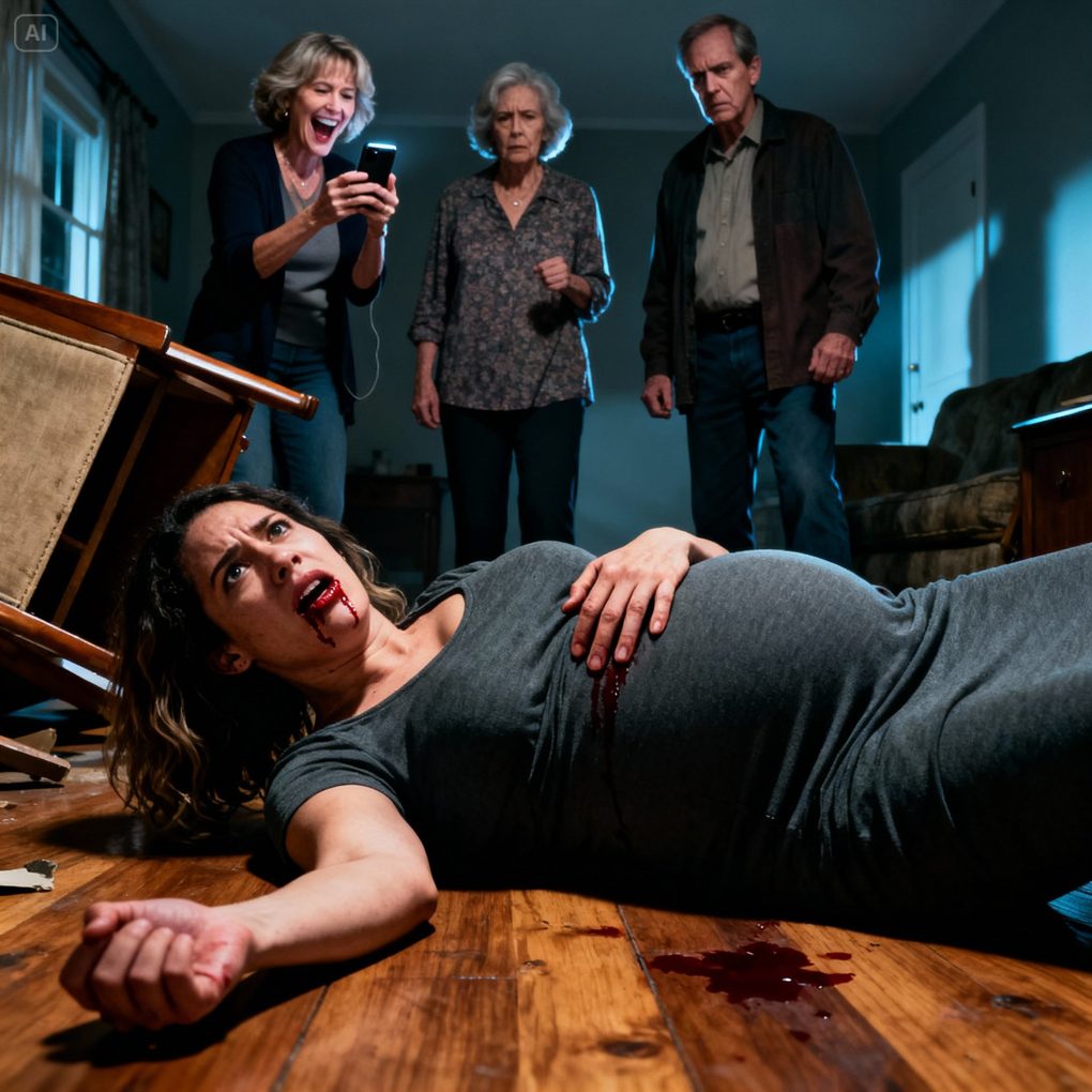 I forced myself up, lip bleeding, my entire body shaking. I grabbed the side table for balance and stared at them—really stared. The fear in my chest turned cold, and my voice came out steady, firmer than I expected.