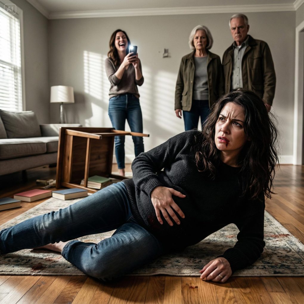 When Emily held the ticket tighter instead of surrendering it, Heather lunged forward, grabbing Emily’s wrist. In the scuffle, Emily stumbled backward, her foot catching on the edge of the rug. She fell hard onto her side, a bolt of pain ripping across her abdomen so fiercely she gasped for air. She heard someone laugh—Heather. The woman actually lifted her phone and started recording. “Let’s see how dramatic she gets.”