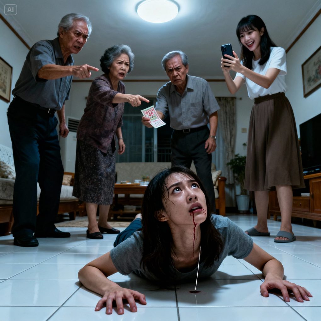 The day I received the notification that I’d won the grand prize, my in-laws rushed over immediately, demanding that I hand over all the winnings, insisting that ‘a daughter-in-law should sacrifice for the family.’ When I refused, they shoved me, sending me crashing onto the cold tile floor. My sister-in-law let out a mocking laugh, phone raised as she recorded everything. I pushed myself up, wiped the blood from my chin, and looked each of them straight in the eyes as I said slowly, ‘All of you will pay for this.’ And they did—just a few hours later, everything turned upside down.”