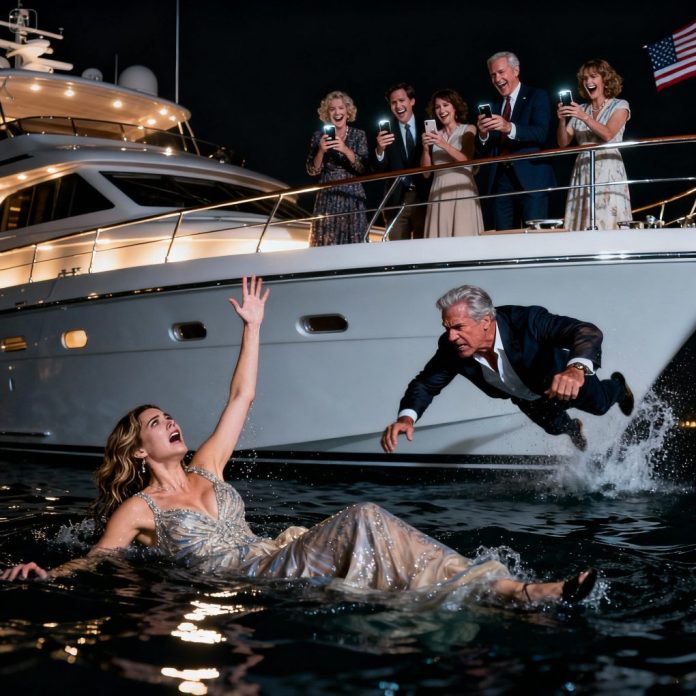 Laughter echoed across the yacht as my son-in-law’s family pushed my daughter into the sea, her heavy evening gown dragging her down in panic. “She needs to learn to obey!” They held up their phones to record, as if her terror were nothing more than entertainment. I dove in and pulled her up, my whole body shaking more from fury than from the cold. Then I turned back to face them, looking straight into each face growing paler by the second. “Enjoy this moment. It will be the last time you ever live this comfortably.” I pressed a single number — and all it took was one soft click. In that instant, I knew everything they had was already beginning to fall apart.