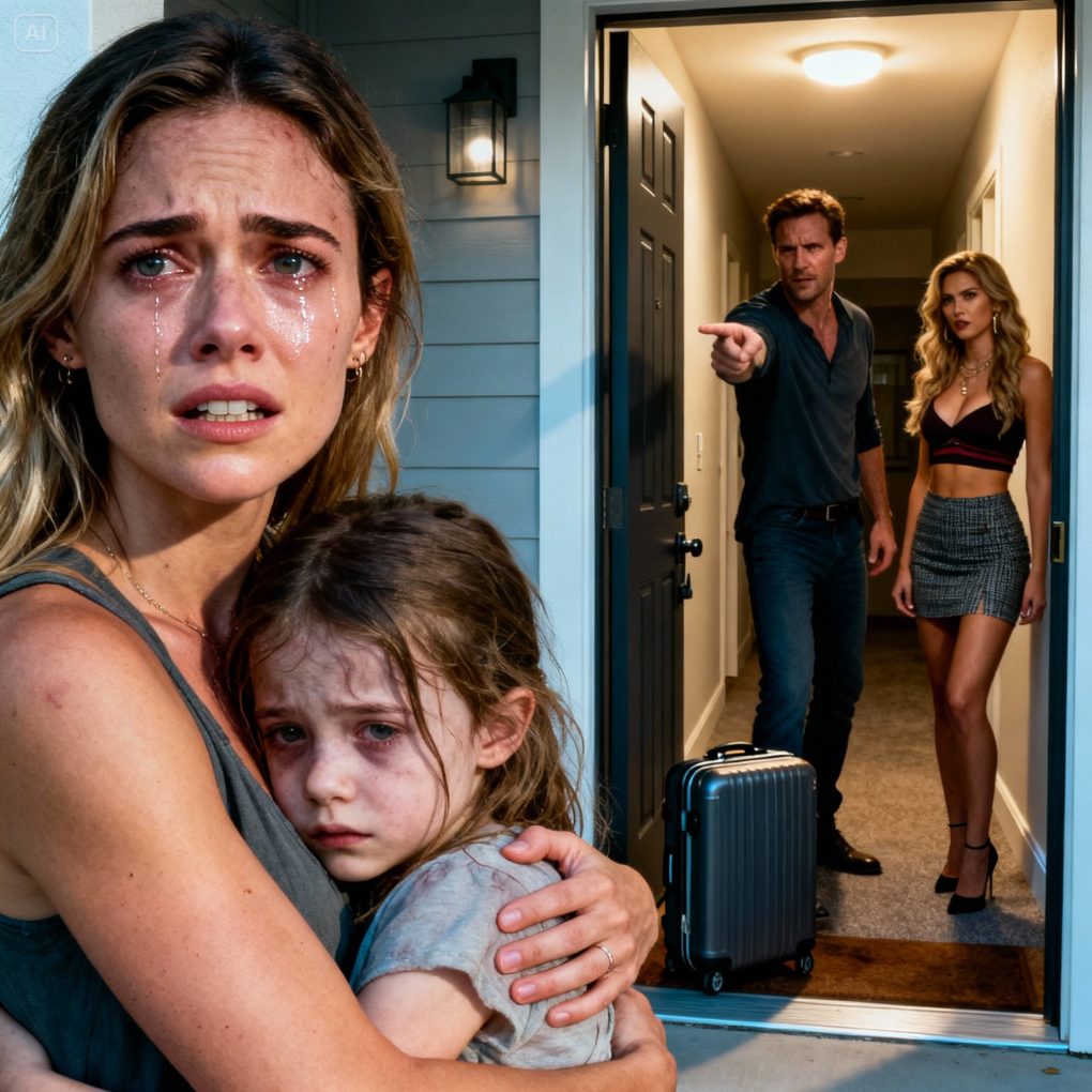 I held my three-year-old daughter, her breathing faint, and begged my husband to help pay for her treatment. He barely looked at us and said coldly, “I don’t have space for sick people.” Then he tossed our suitcases out the front door and pulled his new girlfriend inside, slamming the door shut as if severing whatever humanity he had left. What he didn’t know… was that I had been quietly planning my revenge for a long time. The next morning, when he woke up and saw what was sitting on the table beside the bed, his face went completely white. And that was only the beginning.