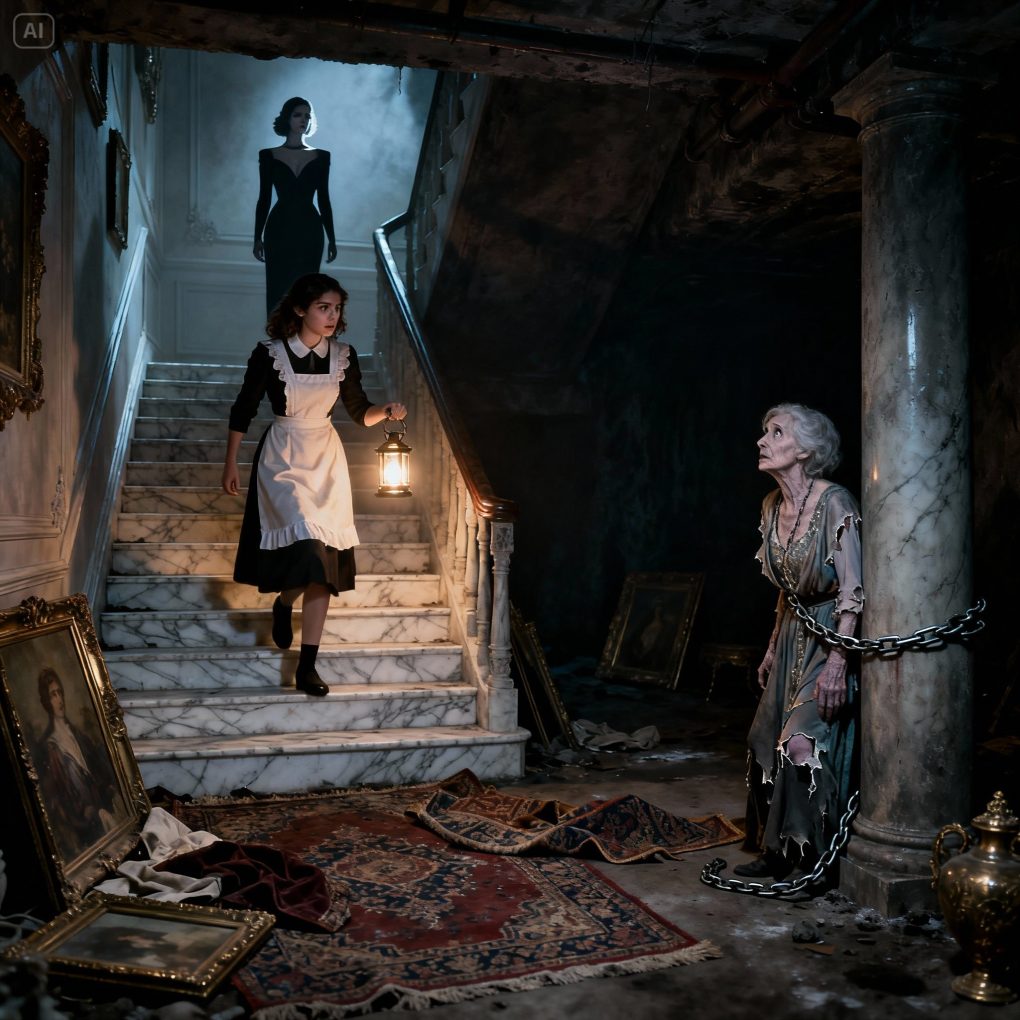 Clara didn’t question the rules. She needed the job, needed the paycheck. But on a stormy night, as the house slept, she heard it—the faintest cry, drifting upward from beneath the marble tiles. A soft, trembling voice. A woman’s voice.