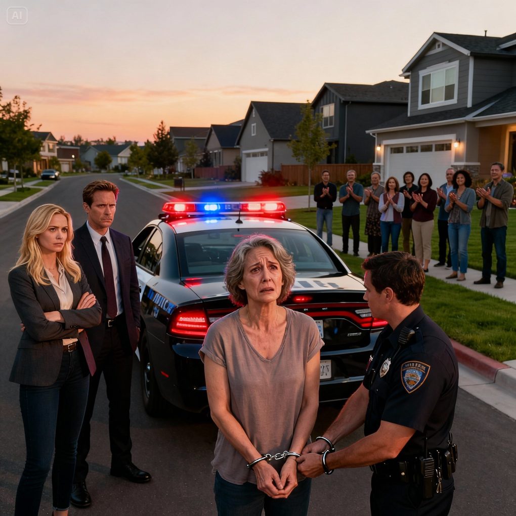 When the car pulled away, the cul-de-sac was silent. For the first time in years, nobody cared about lawn heights, mailbox colors, or holiday decorations. They were too busy watching the queen of petty rules get driven off in handcuffs.