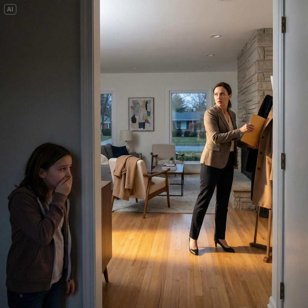 The house settled into silence after Laura left for work. Emma stayed in her room, dozing on and off. Around noon, the sudden metallic click of the front door key startled her. Confused—her mom wasn’t supposed to be home—she tiptoed to the slightly cracked bedroom door.