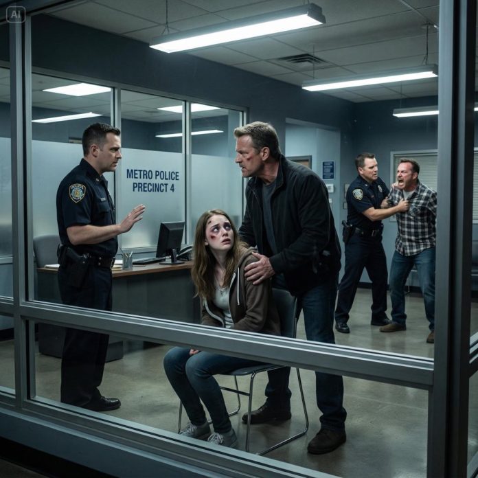 My daughter called me in the middle of the night: “Dad, I’m at the police station… my stepfather hit me. But now he’s telling them that I attacked him. They believe him!” When I arrived at the station, the duty officer went pale and stammered, “I’m sorry… I didn’t know.”