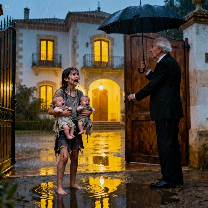 La lluvia caía sin descanso sobre las calles de Bilbao cuando Lucía Morales, una niña de apenas doce años, reunió todo su valor para tocar el timbre de la enorme mansión que dominaba la colina de Artxanda. Sus zapatillas estaban empapadas, su ropa desgastada y el temblor que recorría sus manos no era solo por el frío, sino por el hambre que llevaba días acompañándola. A su lado, sus dos hermanitos, Diego y Marina, la observaban con ojos grandes, confiando por completo en ella.