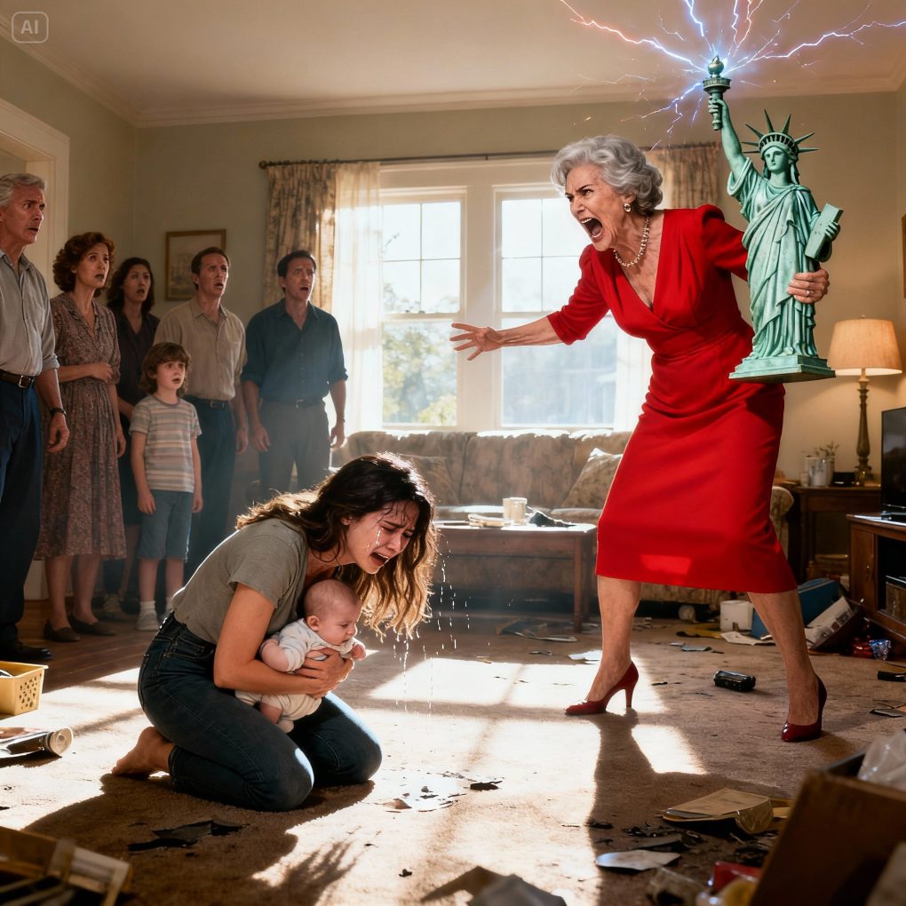 Before I could react, she snatched the metal Statue of Liberty figurine from the mantel—a heavy, solid piece I bought during a trip to New York—and swung it at my head.