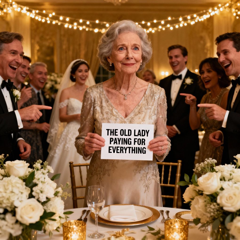 At my granddaughter’s wedding, I spotted my place card… and froze. Not “Grandma.” Not even my name. Just six words, printed in bold for everyone to see: “The old lady paying for everything.” The room erupted in laughter—like it was harmless, like I wasn’t standing there holding back the sting in my chest. So I smiled that practiced American smile women my age wear when something slices deep. But inside, a quiet switch flipped. And that was the moment everything changed.