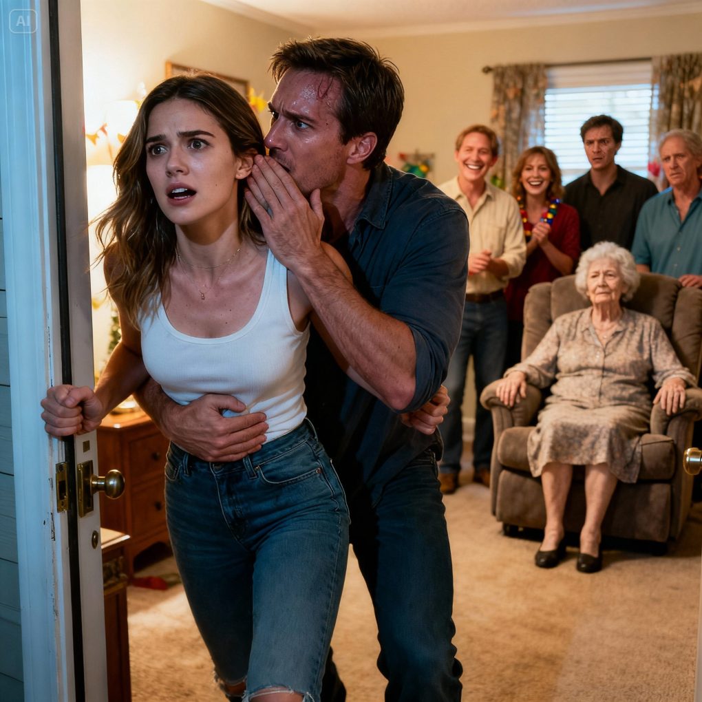 While the family was celebrating my grandmother’s 85th birthday, my husband suddenly leaned toward my ear and whispered, “Grab your bag. We’re leaving. Don’t ask, don’t do anything strange.” I thought he was overreacting… until we got into the car and he locked the doors, his voice shaking: “There is something very, very wrong inside that house.” Ten minutes later, I called the police—and what was discovered sent my entire family into panic.