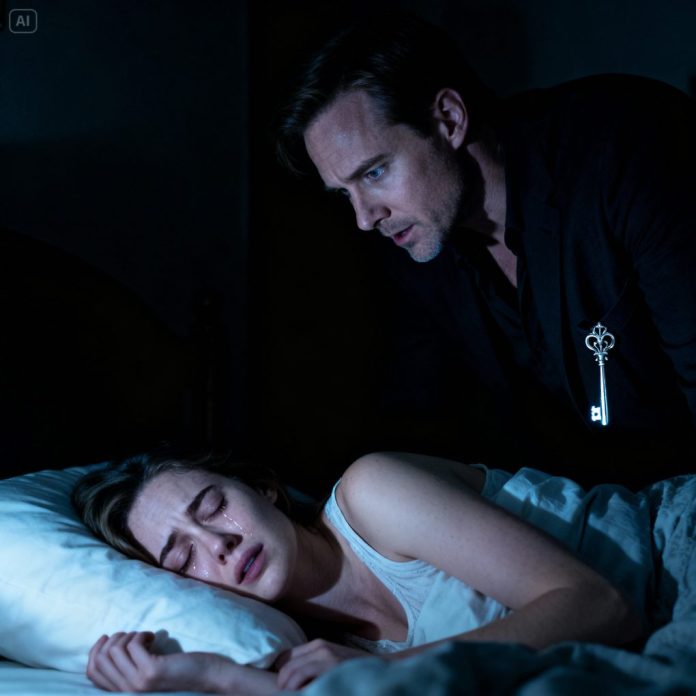 The door eased open with a slow, deliberate push. Mark’s silhouette appeared in the dim hallway light. He moved with careful steps, almost rehearsed, as if he’d done this many times before. Emma kept her breathing slow, forcing her muscles to stay limp.