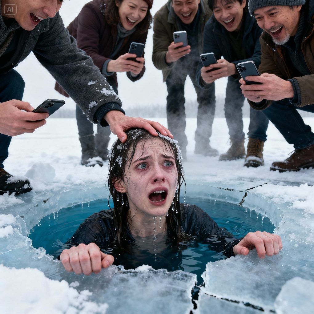 They had shoved her into a frozen lake—in the middle of February—and the only thing they cared about was their phone camera.