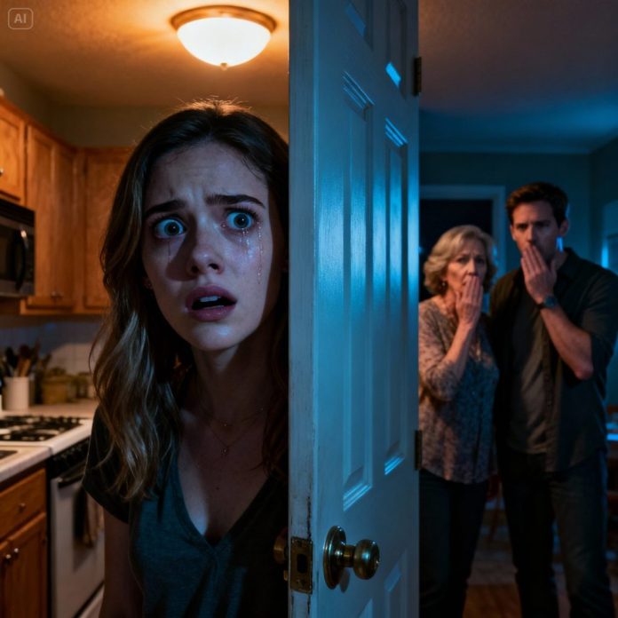 The sudden creak sliced through the kitchen conversation. Daniel stopped mid-sentence. Melissa’s voice dropped to a nervous hush. Olivia’s breath hitched as she instinctively stepped back, her pulse pounding in her ears.